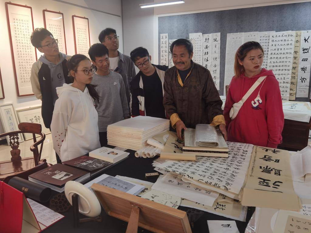 青年学生们首先参观欣赏了蔡修权“百姓共建小康家,华夏同筑中国梦”等主题书法作品,一幅幅书法作品让学生们感受到了中国传统文化的魅力,增强了文化自信。随后蔡修权结合自身经历和创作鼓励同学们要加强个人兴趣培养,静下心不断学习,讲述了国家教育事业发生的翻天覆地的变化,鼓励同学们珍惜时光,刻苦钻研,将个人理想追求与中华民族伟大复兴梦结合起来,干透干精一件事,不断提升自己,更好地为祖国做贡献。