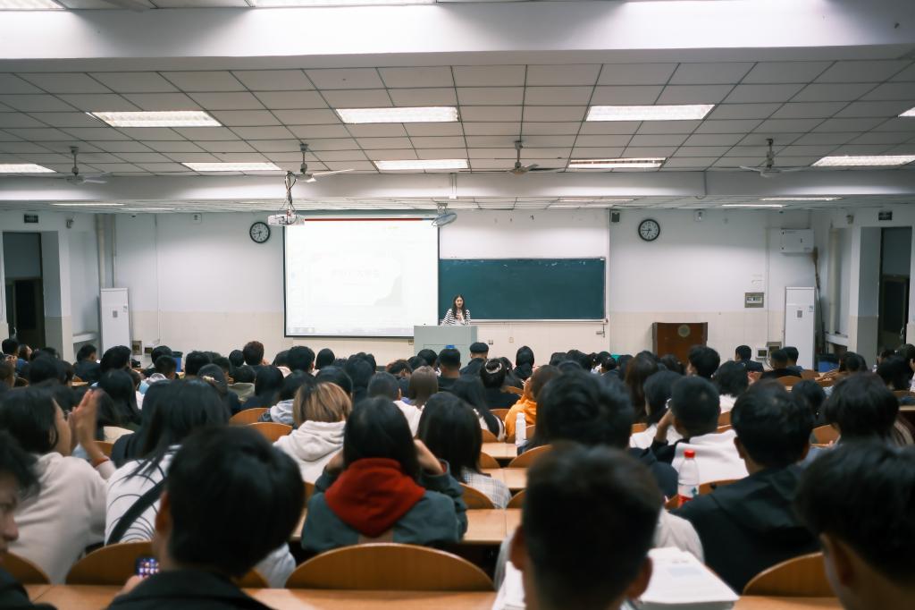 2023级辅导员王倩倩从校规校纪、防范诈骗与禁毒宣传教育、校园出行安全、学习规划、诚信考试等五方面对新生展开介绍,她希望大一新生尽快适应大学生活,严格遵守学校规章制度,完成各项学习任务。