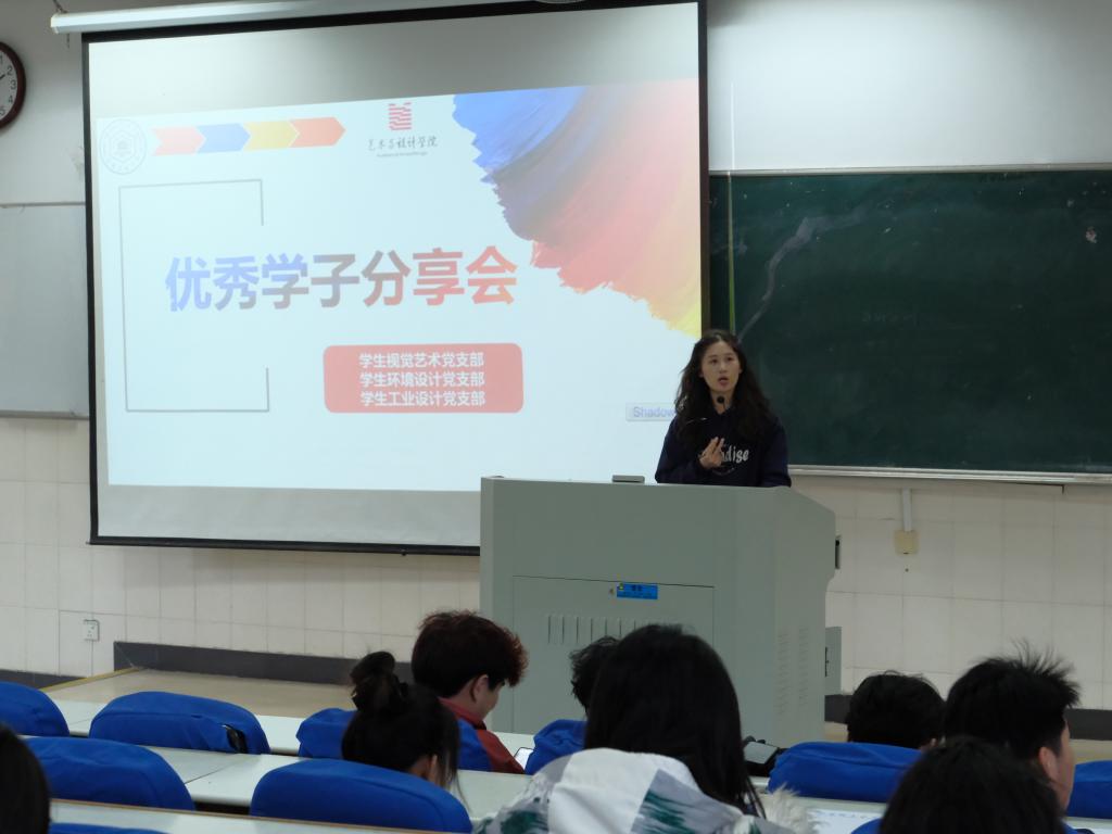、走出学校。环境设计202班学生陈心怡结合自身保研经历,详细解读了保研流程与保研要点,并和在场同学就如何参加学科竞赛展开交流;工业设计201班学生童检重点向学弟学妹们介绍如何做好大学四年规划,鼓励大家相信自己;环境设计202班学生吴润泽主要分享如何打造个人亮点,实现成长突破;数字媒体艺术201班学生刘文元以“看、学、听、说、做”为主线,与在座同学分享保研经验。