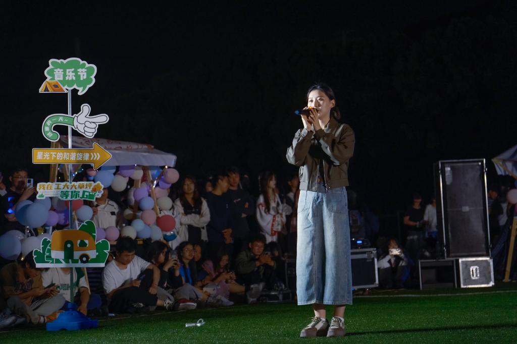 活动伊始,由校舞蹈社部分成员带来的女团舞《Yes!Ok!》用律动甜美的节奏瞬间点燃全场气氛,来往观众无一不被吸引。一舞结束,《美好的事能不能发生在我身上》、《还我蔚蓝》、《吉他与孤独与蓝色星球》、《只有音乐才是我的解药》以及《choose me》接力献唱,星空下的草坪仿佛变成了理想的花园。随后上演的舞蹈《GMIX》舞姿简约帅气,充满现代气息。夜幕渐渐昏沉,但表演的浪潮愈发热烈,模特协会的同学们踩着星光而来,《华韵》登场;说唱协会的同学们用一首首高质量原创歌曲引燃全场······观众围绕成圈,举着荧光棒高呼着,欢笑着,无论是老师还是学生,亦或是慕名而来的市民都被音乐节的狂热氛围所感染,情不自禁地摆动起来。霓虹灯投下的光影在人群间跳跃舞动,人们用丰富的律动与宇宙的频率相衬,表现出对生命、对青春的热爱。