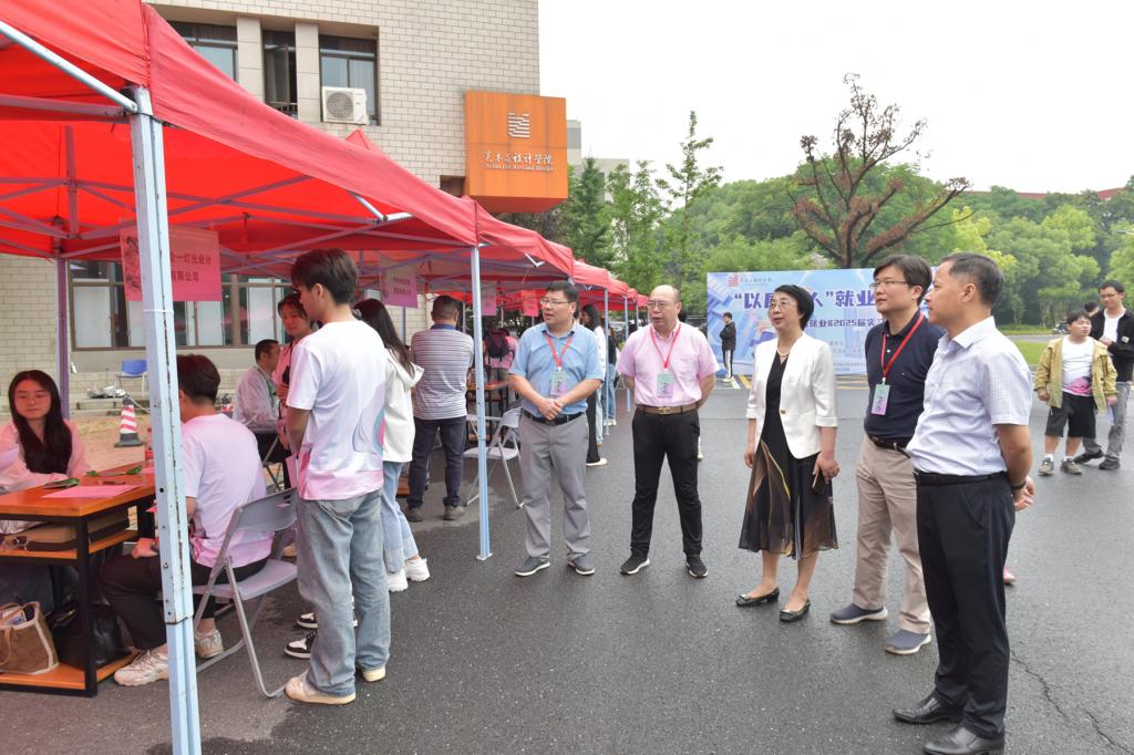 仪式后,“以展选人”艺术设计类专场就业推介会在设计艺术馆广场举办,上海企一实业集团有限公司、太平洋建设集团有限公司、奇瑞汽车有限公司国际公司、安徽慕曼德家具有限公司、安徽鲲鹏装备模具制造有限公司、马鞍山新华广告有限公司等近30家企业招聘主管漫步设计馆,“沉浸式”观展看演,现场揽才。求职毕业生手持简历,与招聘企业沟通交流,了解岗位需求,用人单位详细介绍企业概况、发展前景、工资待遇等,60余名毕业生现场与用人单位达成了初步就业意向。