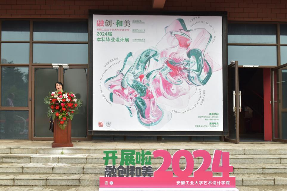 2024届本科生毕业设计作品展在秀山校区设计艺术馆广场盛装开展。校党委常委、副校长顾明言,马鞍山市委宣传部副部长、市文明办主任陈学明,休宁县人民政府副县长李文喜,“当涂民歌”国家级非遗传承人陶小妹,北京小米科技有限公司小米生态链设计部工业设计负责人、院工业设计专业2004届校友谢迎春,南京大美天第文旅投资集团有限公司副总裁孔德银等26家企业家代表出席仪式。宣传部、研究生工作部、团委、教务处、国际交流与合作处、海星体育