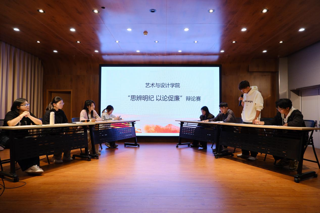 为丰富大一新生的校园文化生活,引导学生们深入思考廉洁自律、道德规范以及社会公正等问题,进而促进校园廉洁文化的建设与发展,海星直播 于10月10日在艺设楼北401举行“思辨明纪 以论促廉”主题辩论赛。本次比赛分专业组建队伍,共有4支队伍参加比赛,数百名师生前来观看,场面异常热烈。