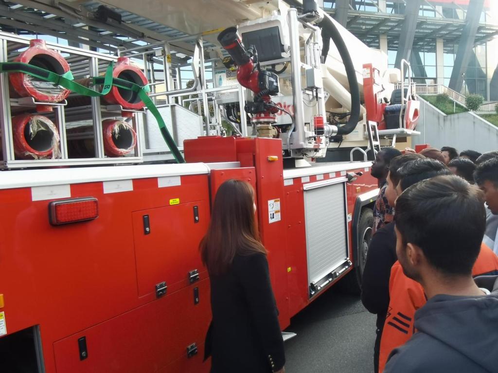 辅导员的指导下,迅速按照预设的疏散路线有序撤离,整个过程紧张而有序。在模拟疏散环节结束后,消防员还为新生们展示了各类先进的消防装备,并详细介绍了各种消防器材的用途和使用方法。新生们纷纷上前参观学习,与消防员互动交流,现场气氛热烈。