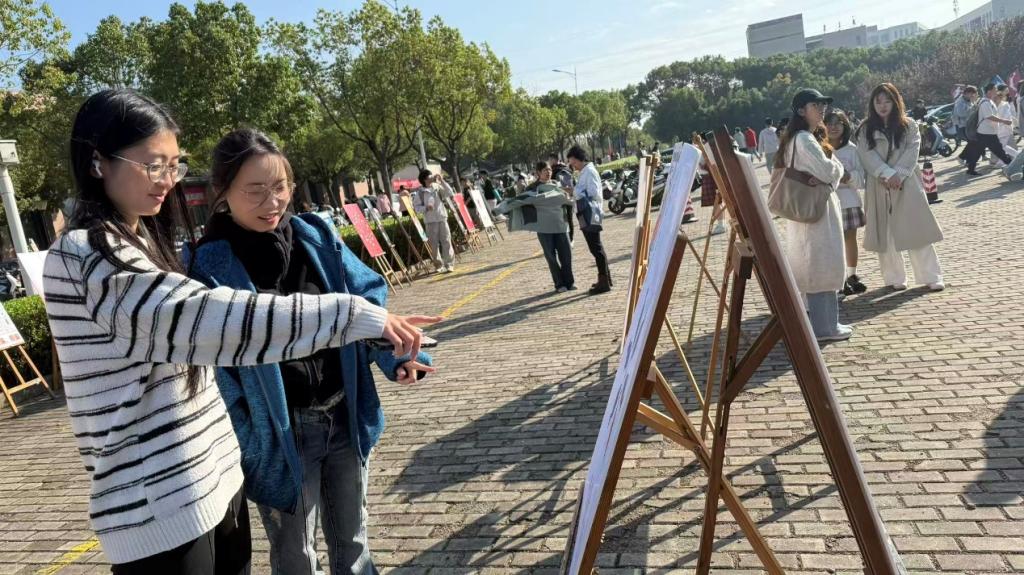 展览期间,现场吸引了众多师生驻足观看。同学们在作品前交流讨论,加深了对各类诈骗手段的识别与防范认知。海星直播 志愿者也在现场结合画作内容,进行讲解与提示,进一步强化“不轻信、不转账、不泄露”的安全意识。此次活动通过艺术展示与实地讲解相结合的方式,营造了全员防诈的浓厚氛围,取得了良好的警示教育效果。