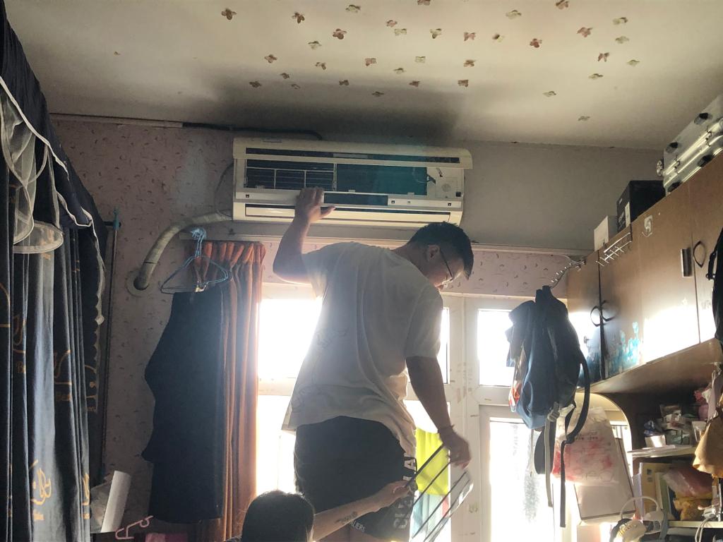活动开始前,各班级代表接受了相关理论指导,熟悉空调清洗步骤及要领,并认真观看视频演示。随后,各班级男生代表充分发挥“不怕脏不怕累”的精神,主动上门,有条不紊的帮助女生宿舍清洗空调,大家分工合作,干劲十足。有的同学在帮助本班同学清洗空调后还自发地帮助其他专业的女生宿舍清洗空调,迎来一致好评。最后,各年级辅导员也叮嘱同学们要注意用电安全和适时使用,当宿舍无人时要及时关闭空调,夏天来了莫要太贪凉。
