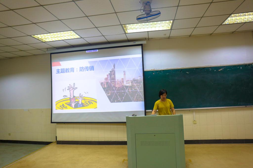 远离传销,珍视未来”一系列防传销主题教育活动于9月至11月中旬在校内、教室内、宿舍内,以在宿舍楼内悬挂防传销主题教育展板、各年级开展主题年级会、主题班会以及签名活动相继开展起来,围绕“远离传销,珍视未来”这一主题,各个年级辅导员从六个方面来为大家做出详尽阐述。指出传销以赚取经营额为目的,损害社会利益,扰乱市场经济秩序,危害性极大讲述了一系列典型的事实案例,并讲述亲朋好友的亲身经历,在轻松的气氛中为同学们阐释了传销的运作方式,及国家对传销行为的严厉打击和传销组织落网后应承担的法律责任。告诫大家要远离传销,首先从自己做起,努力修身,德才兼备,对自然常怀敬畏之心,学会明辨是非,如果不慎落入传销组织,一定要冷静处理,想办法逃脱,并借助社会的力量拯救他人。