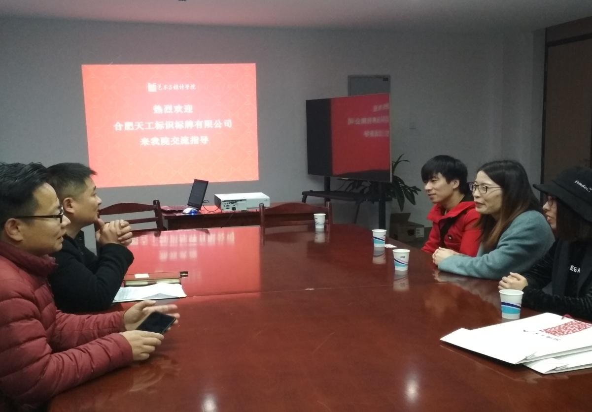 与合肥天工标识标牌有限公司设计总监岳秋月一行4人在教创北楼506就人才培养、校企合作等事宜进行了深入交流,并签订了人才培养与就业基地协议。海星直播
