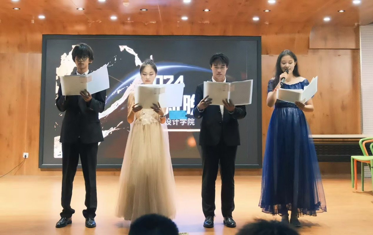 晚会节目不断,精彩纷呈,涵盖走秀、舞蹈、话剧、合唱等多种形式。艺美和艺舞社带来的舞蹈和走秀是本场晚会的第一个节目,活力的姿态、动感的舞蹈瞬间让晚会氛围热烈起来。随后歌曲《追光者》、《 i love you 3000》、《我们俩》、《必杀技》、《追光者》、《白羊》等流行歌曲接力上演;现代舞蹈串烧、古典舞蹈《红马》等表演按序进行。小品《校园的守饭人》诙谐幽默,展现出校园生活的趣味,引得台下笑声和掌声不断。这些节目不仅展示了同学们的才艺,更传递出青春的活力与激情。晚会串场游戏好玩有趣,在听歌识曲环节所选歌曲类型丰富,涵盖了多种风格极大的调动了全场的热情。晚会在工设241班合唱的歌曲《紫荆花盛开》中落幕。通过歌声,台下观众仿佛看到了香港从过去的沧桑岁月中一步步走来,在祖国母亲的关爱下,如今已成为一颗璀璨的明珠,熠熠生辉。