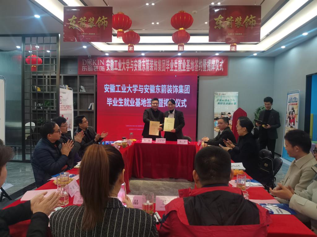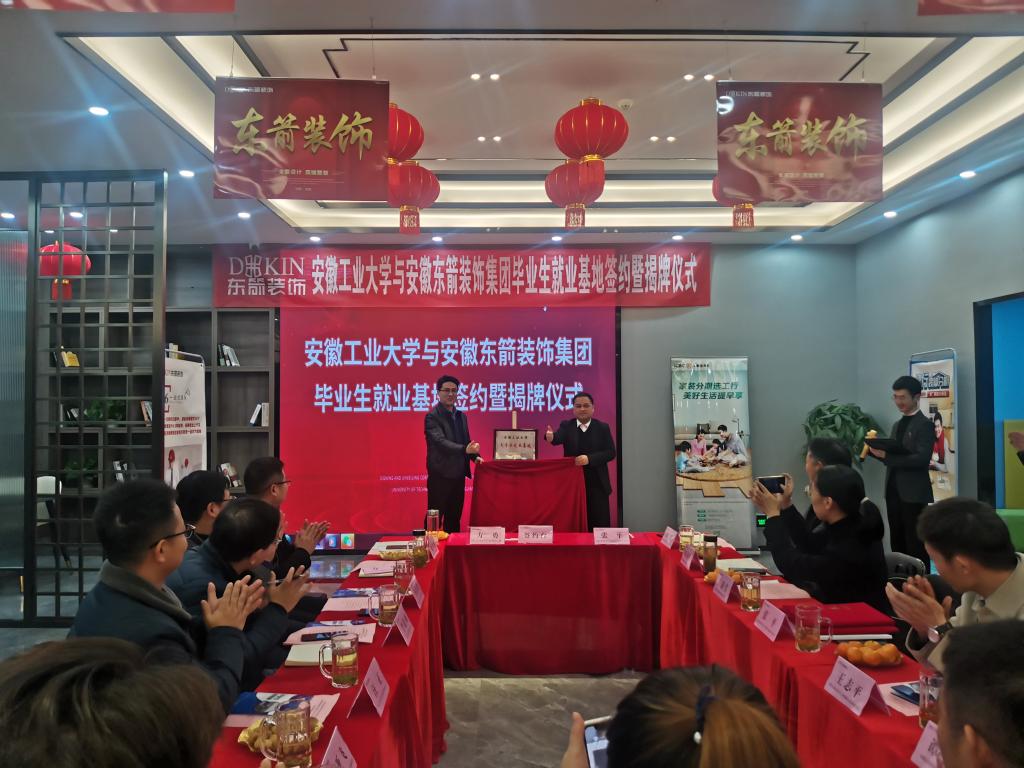 走访期间,赵传刚、方勇先后与奇瑞商用车(安徽)有限公司和安徽东箭装饰集团芜湖公司两家企业签订《人才培养与就业基地合作协议书》,并与企业举行了安徽工业大学大学生就业基地授牌仪式。
