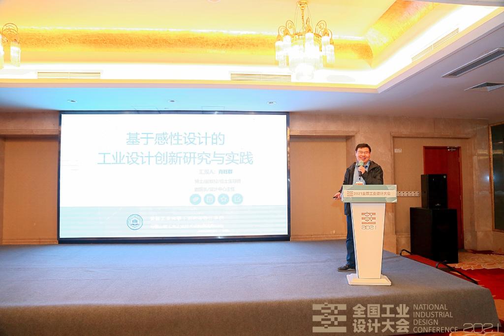 副院长肖旺群受邀在“设计科学”主题论坛作学术报告。他以“基于感性工学的工业设计创新研究与实践”为报告主题,主要分享两大方面内容,一方面是技术创新与设计创新双轮驱动下的产品设计实战案例解析,其中包括牛奶装箱机器人、码垛机器人、六自由度协作机器人、破拆机器人、凿岩钻机、土壤取样钻机、消防机器人等产品从设计到落地的全流程阐释;另一方面是结合生理信号的智能工业机器人感性设计方法研究,工业机器人设计开发研究中,单纯凭借工业设计师的感性思维及创造力进行设计,或者过分强调情感认知领域数据量化研究的介入,都相对片面,展开以上两方面有效结合的研究,探索一种为工业机器人设计创新提供艺术创造力与科学支撑的设计方法。同时,他还将安徽工业大学及海星直播