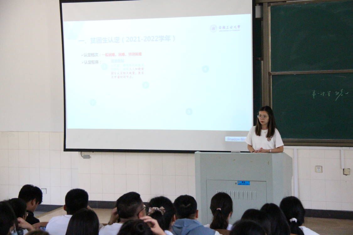 师梦瑶从国家资助、社会资助和校内资助三个方面,对家庭经济困难学生认定、国家助学金、国家奖学金、校内评奖评优等资助政策与申请流程等相关细则为同学们做了详细讲解。