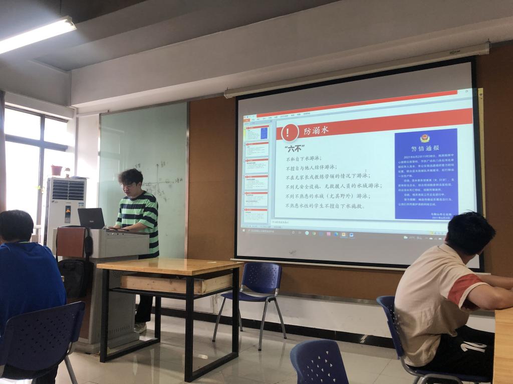 主题班会上,各班级积极组织同学们通过观看防溺水宣传片引导学生意识到安全的重要性和生命的可贵,并向同学们介绍了发生溺水的常见原因、预防溺水的措施、溺水时的自救方法和现场抢救等知识,教育引导学生做到发现私自游泳或险情会相互提醒、劝止、报告,会基本的自护、自救方法。最后,各年级辅导员要求学生们做到“六不”:不私自下水游泳;不擅自与他人结伴游泳;不在无家长或教师带领的情况下游泳;不到无安全设施、无救援人员的水域游泳;不到不熟悉的水域游泳;不熟悉水性的学生不擅自下水游泳。学生们纷纷表示会遵守防溺水安全“六不”,提高避险意识和自救能力。