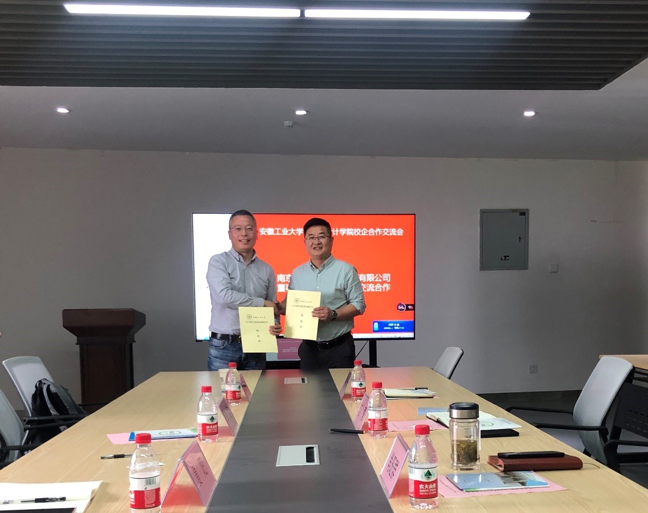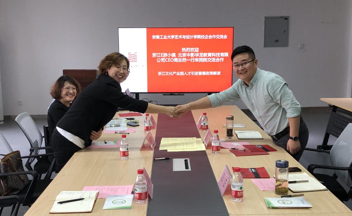 分别与北京中影华龙教育科技有限公司和南京思德展示科技股份有限公司签订了校企合作框架协议,并就未来学生实习实训以及人才输送等方面进行了更深层次的交流与探讨。