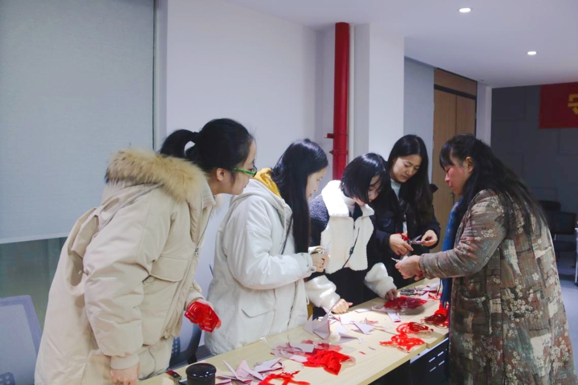 活动开展过程中,张学华老师首先给同学们介绍了剪纸的历史,讲述自己与剪纸艺术的缘分,并通过国内剪纸艺术大师的作品,让学生初步了解剪纸艺术、感受剪纸艺术的魅力。为进一步激发学生的剪纸热情与兴趣,张学华老师还言传身教,现场演示、教授简单剪纸,鼓励学生“现学现练”,通过折叠剪纸,剪出不同的汉字与图形,行云流水的操作,生动传神的形象,引得学生啧啧称赞。张学华老师对每一位参与者的作品进行手把手的指导,一幅又一幅精美的剪纸作品就此诞生。