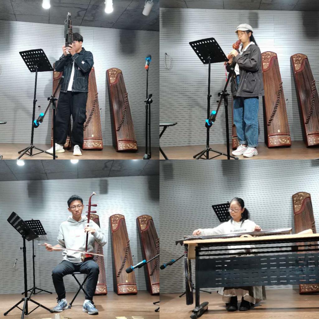 除此之外,几位新生的二胡独奏《赛马》也展现了同学们扎实的演奏功底,让全场的氛围变得轻松而欢快;民乐笙、琵琶和古琴乐器的出场也令大家感叹艺术团新生中乐器种类的丰富多彩。