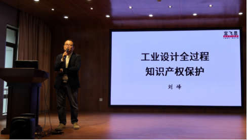 随后,刘峰先生作《工业设计全过程知识产权保护》讲座,他首先结合近年来设计领域几起知名产权纠纷事件,引出知识产权保护的重要性及必要性;随后,他详细讲解了专利和商标的分类以及申请的方法,尤其是与设计专业密切相关的外观专利、实用新型专利以及发明专利的区别与申请流程;最后,他勉励在座学生要积极申请各类专利,学会保护自己的设计成果。