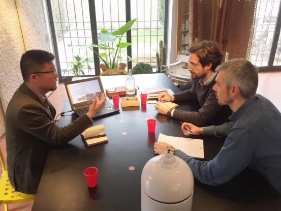 图9:向佛罗伦萨大学斯蒂法诺、尤里两位教授介绍海星直播