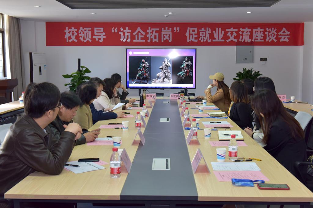顾明言向五家企业负责人对我校毕业生就业创业工作的关心支持和对我校毕业生的认可表示感谢。顾明言强调,随着国家经济的日益繁盛,讲好中国故事传播优秀文化的需求日益强烈,艺术具有生命力,能够使优秀文化得以传播。随着我校创新性人才培养体系的完善,我校的艺术专业也具有工科特色,培养的学生具有吃苦耐劳的精神和扎实的学科功底。希望企业能够从我校招收到更多的优秀毕业生,同时也助力企业更好更快发展,形成长效合作机制。