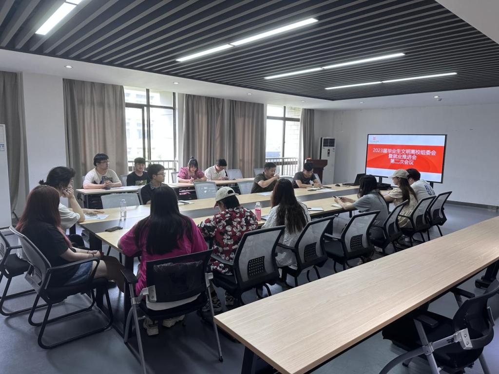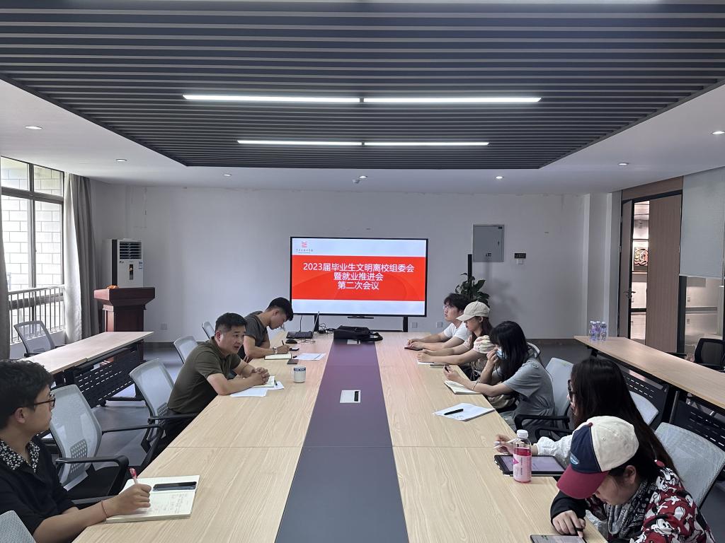 于6月7日在艺设楼506室召开学生干部促就业工作推进会。院党委副书记、纪委书记、副院长方勇,团委书记汪正,辅导员孙海澄以及毕业生班长和团支书、文明离校组委会全体学生干部参会。