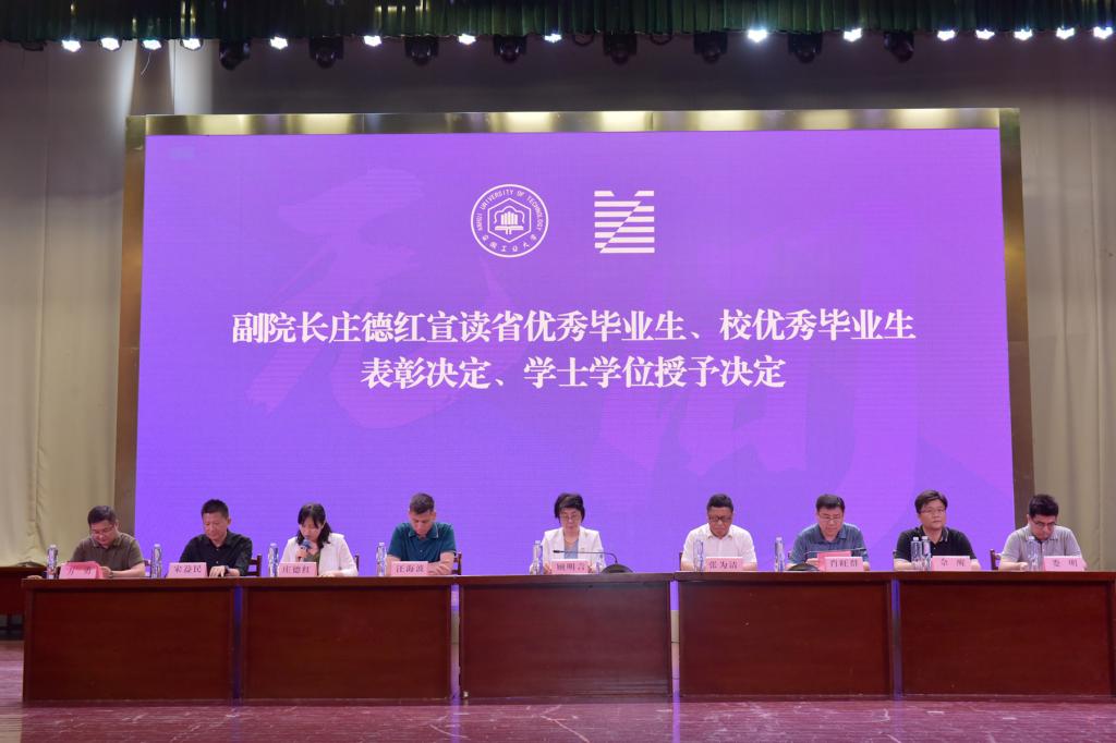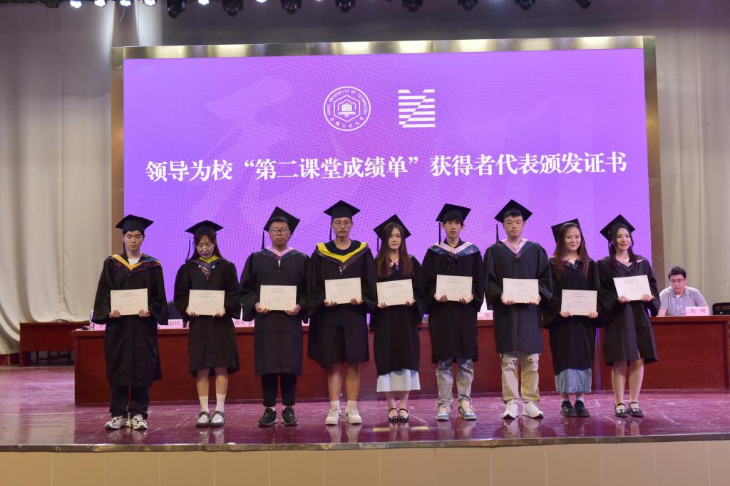 在欢快的音乐声中,领导老师们依次为校“第二课堂成绩单”获得者代表、本科生校优秀毕业生获得者颁发证书。副校长顾明言为研究生省优秀毕业生、本科生省优秀毕业生获得者颁奖,全场响起阵阵掌声。