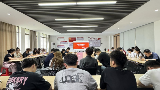 研究生第一、第二党支部在艺设楼北506联合召开政治学习会议,会议由研究生第二党支部书记罗晓珊同志主持,两个支部全体党员参加。