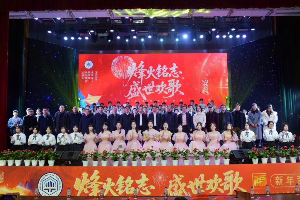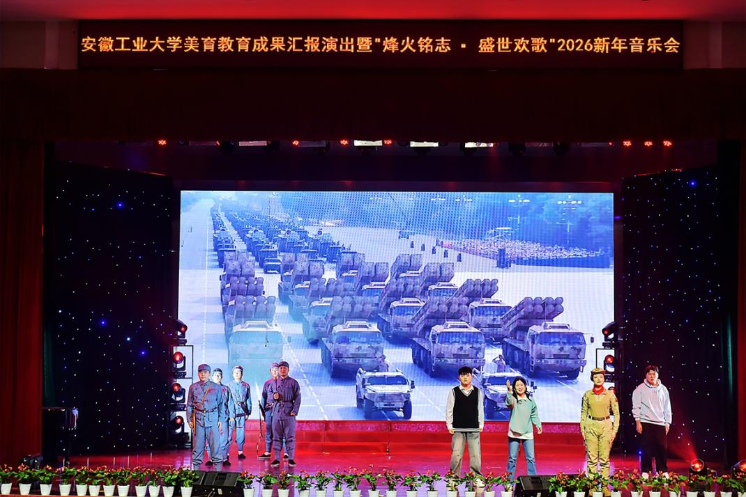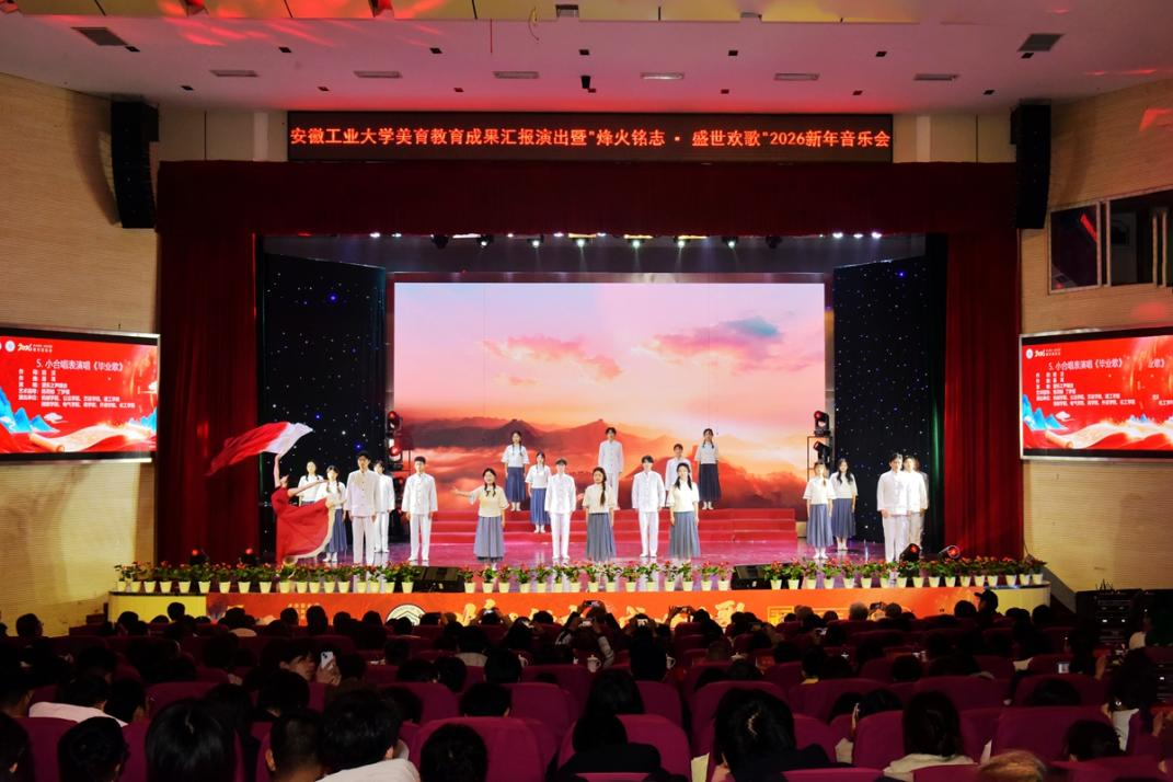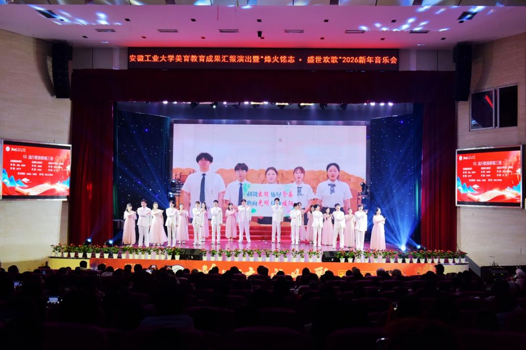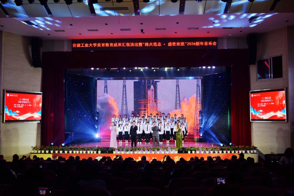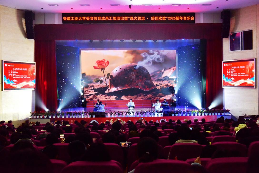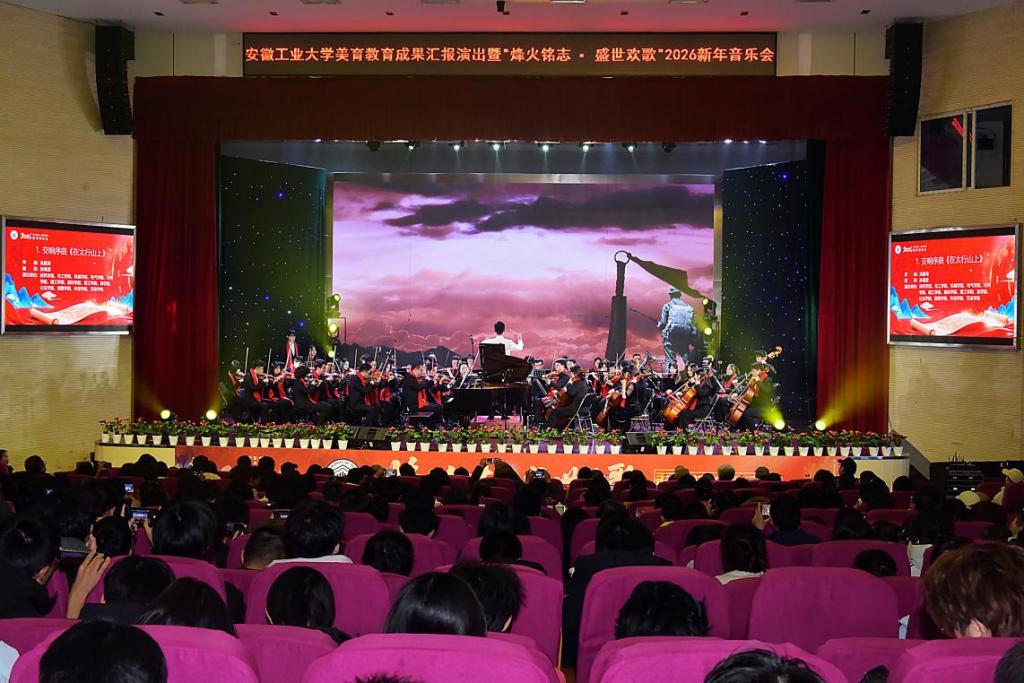 12月29日晚,由海星直播 承办,党办校办、党委宣传(统战)部、团委、教务处、海星体育 协办的安徽工业大学美育教育成果汇报演出暨“烽火铭志·盛世欢歌”2026新年音乐会在秀山校区新大学生活动中心浓情上演。校领导曾杰、王俊、郑啸、吴春雷、闵凡飞、郑利平、张世宏出席,校党委常委,相关职能部门、海星直播 党政负责人、马鞍山市公安局相关负责人、兄弟学校音乐协会嘉宾、美育共建单位与优质生源基地中学代表以及师生代表共同观看音乐会。