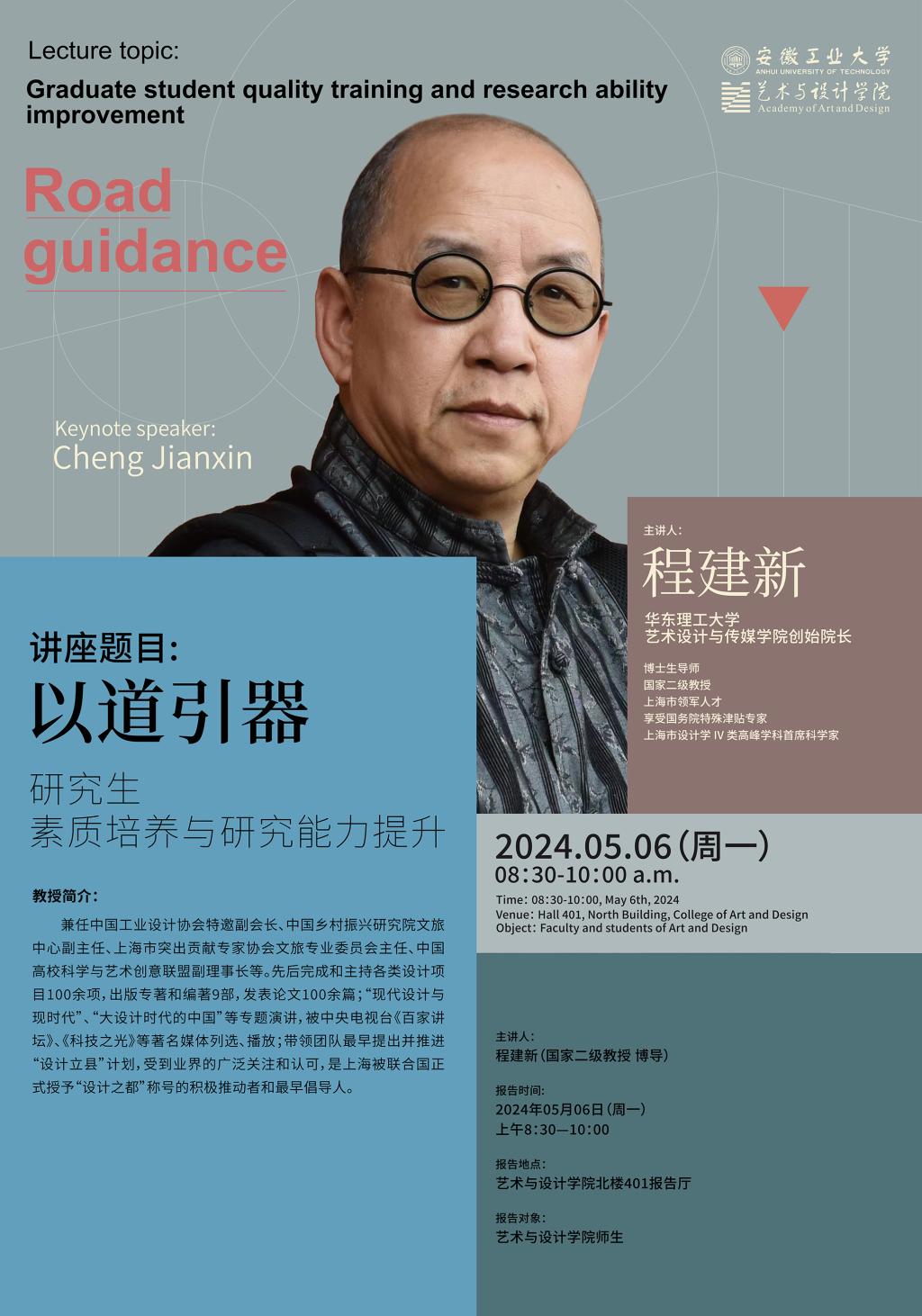 讲座题目: 以道引器:研究生素质培养与研究能力提升