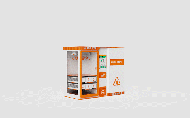 设计说明:这是一款针对社区旧衣物捐献回收产品的设计,具有回收废旧衣物、共享完好衣物的功能。采用积分转换机制,将人们投入的衣物称重转化为积分,用来兑换奖励,激励人们积极地参与衣物回收行动。同时具备衣物共享功能,能够更加便捷地帮助有需要的人随时获取温暖干净的衣物。