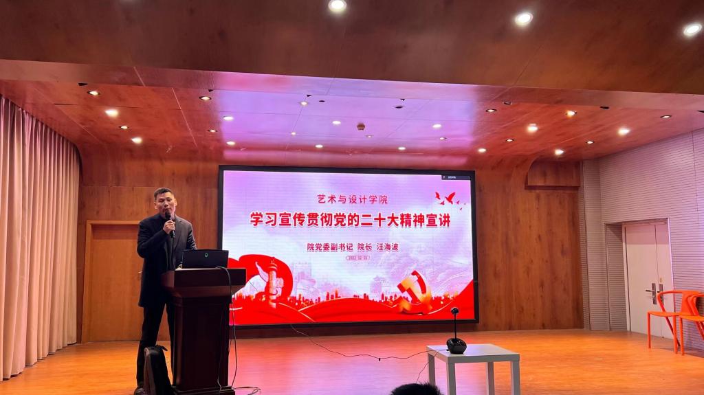 掀起学习宣传贯彻工作热潮,不断推动党的二十大精神往深里走、往心里走、往实里走,12月3日下午,院党委副书记、院长汪海波受邀到视觉艺术设计系宣讲二十大重要精神,系室全体教师和部分学生代表聆听了宣讲会。