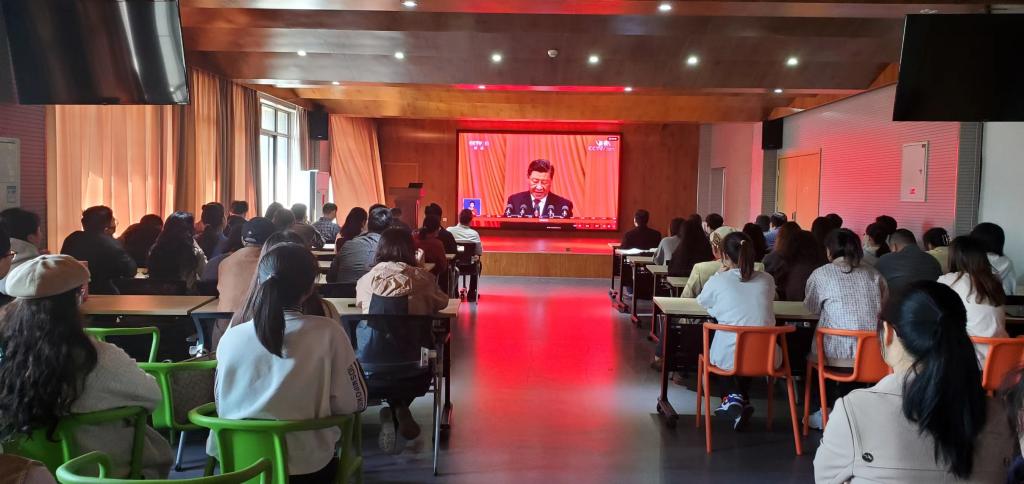 全体教师和学生党员在401报告厅集中集中收看了二十大开幕会。与会人员聚精会神、仔细聆听、认真记录。