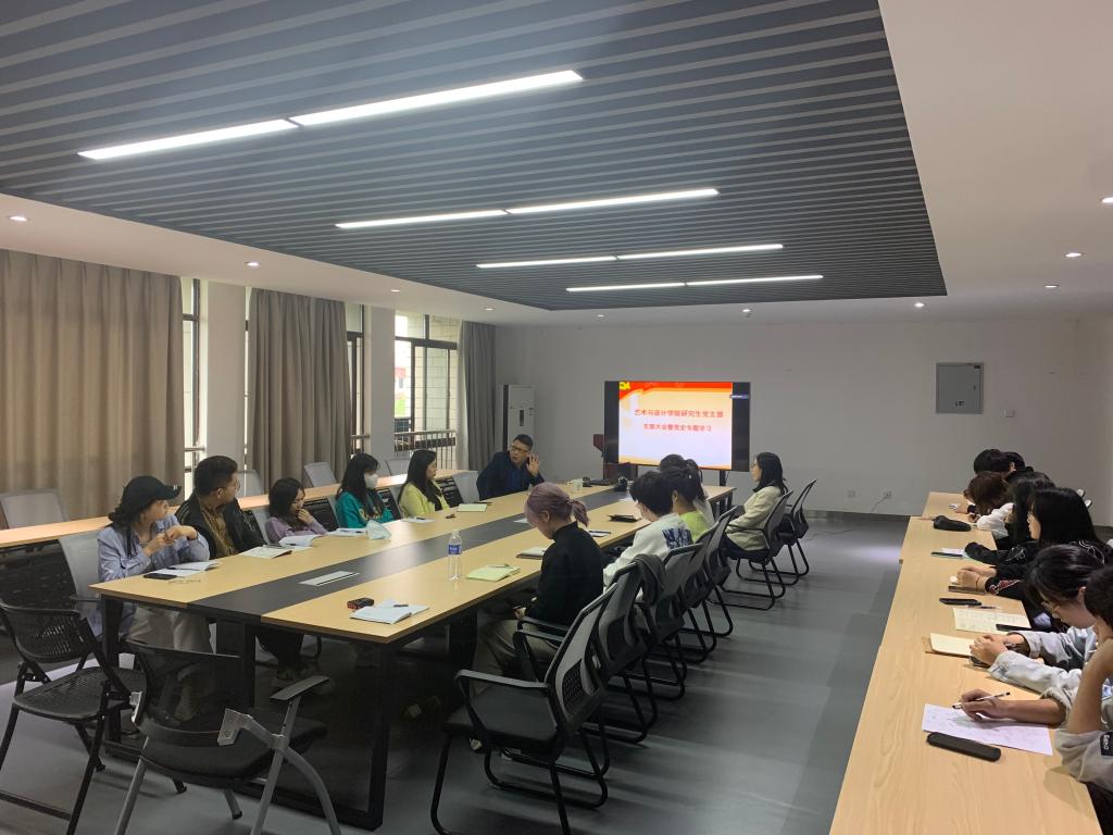 4月26日下午,研究生党支部在艺设楼506开展了党史学习专题教育党课,肖旺群副院长做了题为“肩负使命,设计为民,科研报国”的主题党课,院党委书记张为清做党史专题教育,支部全体党员参加了学习。