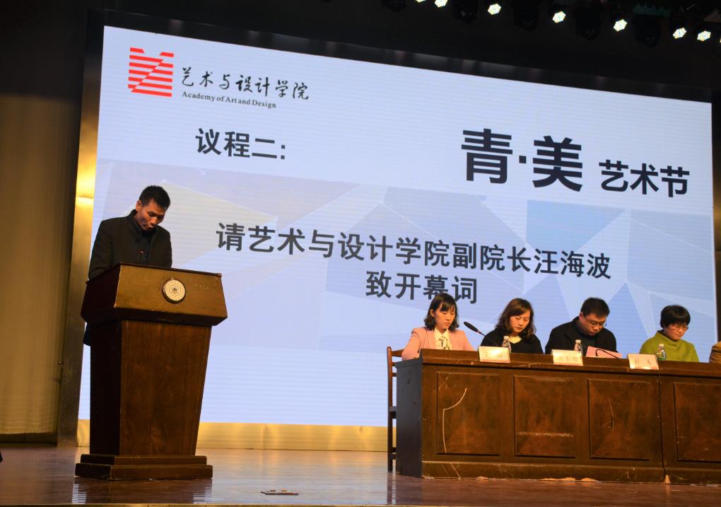 副院长汪海波致开幕词,随后由党委副书记、副院长赵玉艳宣读第四届“青·美艺术节”方案,安徽工业大学校团委副书记杜飞致贺辞,教师代表、学生代表分别发言。最后,院党委书记王薇宣布艺术节开幕,并邀请市美术家协会副主席刘钢一同启动开幕球。