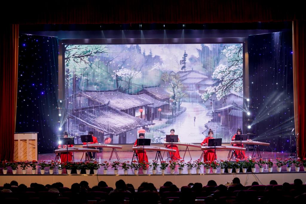 音乐会在民乐合奏《京调》中欢乐开场,将京剧曲调的韵味与民乐的独特魅力完美融合,瞬间点燃了现场气氛。随后的《阿里山之歌》又将观众带入了台湾地区那风光旖旎的阿里山,清新的旋律如微风拂面,让人仿佛置身于美丽的宝岛。小提琴二重奏《帕萨卡利亚》(亨德尔)时而低回婉转,时而高亢激昂展现了西洋古典音乐的深邃与优雅。二胡齐奏《葡萄熟了》《良宵》使听众们在欢快活泼舒缓悠扬的气氛之中流转。大提琴齐奏《大鱼海棠》和《穿越时空的思念》的旋律深沉醇厚,带领观众们亲临奇幻与感动的世界。古筝合奏《茉莉花》《市集》的旋律时而清新优雅时而灵动,让人如痴如醉。观众们在《贝加尔湖畔》的旋律中,感受贝加尔湖的神秘与宁静《贝多芬小提琴协奏曲》第三乐章OP.61展现出贝多芬音乐中不屈的精神力量,赢得观众阵阵喝彩。《扬鞭催马运粮忙》《姑苏行》分别展现了欢快喜庆如诗如画的景象。管乐合奏《茉莉花》别出心裁,《梁祝・化蝶》悠扬的琴声让听众为梁祝的爱情动容。音乐会在男女声二重唱《乘风破浪再出发》中圆满落幕歌声里饱含着对未来的憧憬与奋进的力量,激励着在场师生向着梦想勇往直前乘风破浪